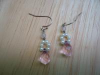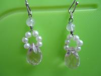 材質: 粉晶園珠/水滴型粉晶珠,珍珠,銀色合金配件.耳勾 (可改夾)
