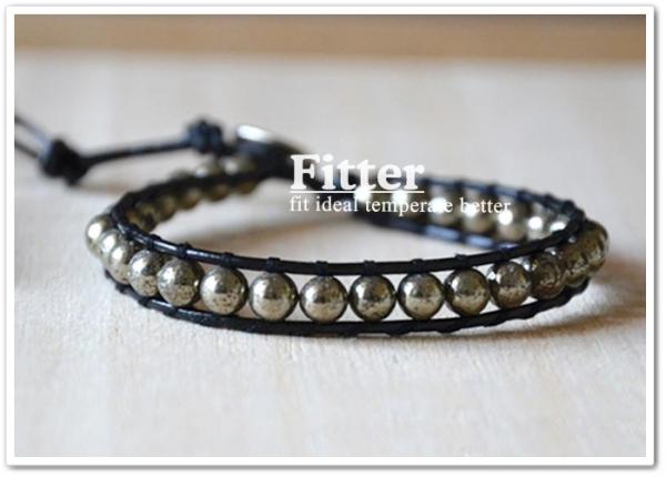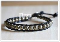 材質:黃鐵礦6mm、真牛皮繩、不鏽鋼扣