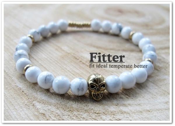 黃銅個性骷髏頭白松石手鏈