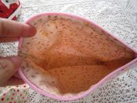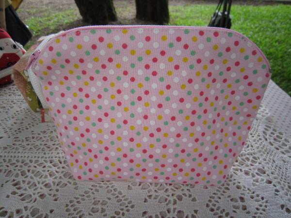 桃紅底彩色點點圖案棉質表布,內袋為粉色花草花布。