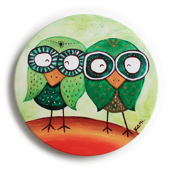 Kami插畫吸水陶瓷杯墊-彩紅貓頭鷹