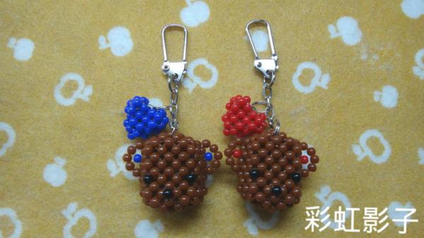 立體串珠情侶大小寶熊+立體愛心鑰匙圈
