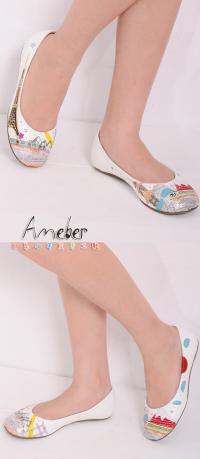 【Ameber】東京愛情鐵塔小羊皮娃娃鞋白色