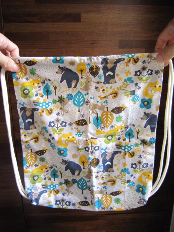 森林動物風,有熊、狐狸、兔子、松鼠、鳥,淺紫底色,無內裡。
