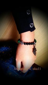 以兩條蠶絲線串製,打結部分用保麗龍膠完成,如果使用一段時間了,寶貝手鏈不會突然斷掉,會慢慢一絲絲斷裂~到時候就可以換線了!