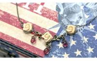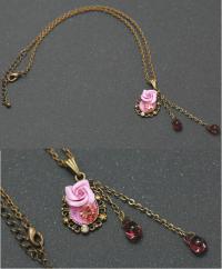 此物在別的拍賣網站已售出(僅po於此供大家欣賞)。紅色布上點綴著粉色的天然石(紅布版是硬挺的),售出便不再製作。