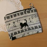 【鋼琴與黑貓零錢包(灰色)】音樂 樂器
