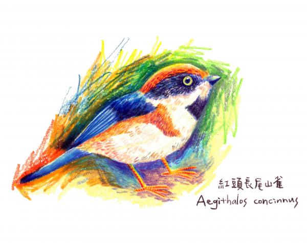 插畫明信片之我是紅頭長尾山雀鳥