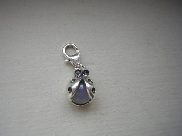 純銀手工鑲月光石的小瓢蟲墬子