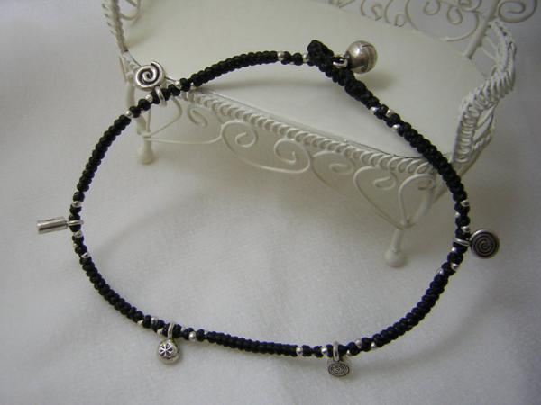 手工純銀墬+臘線編織手鏈
