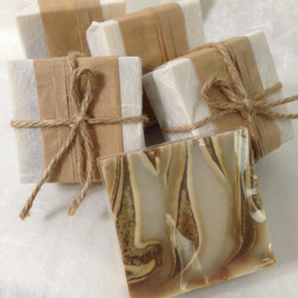 商品配備:皂體包膜、商品標籤、木質皂盒