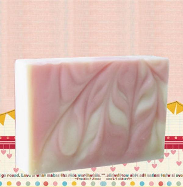 成分:棕櫚油、椰子油、橄欖油、榛果油、玫瑰果油、NaOH、純水、桃紅色珠光粉、橙花精油、高嶺土。
