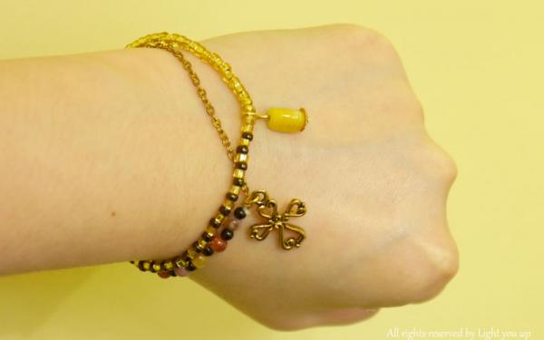 此款手鍊是由雙線製作 比起單線來較不容易斷裂 也較能維持形狀